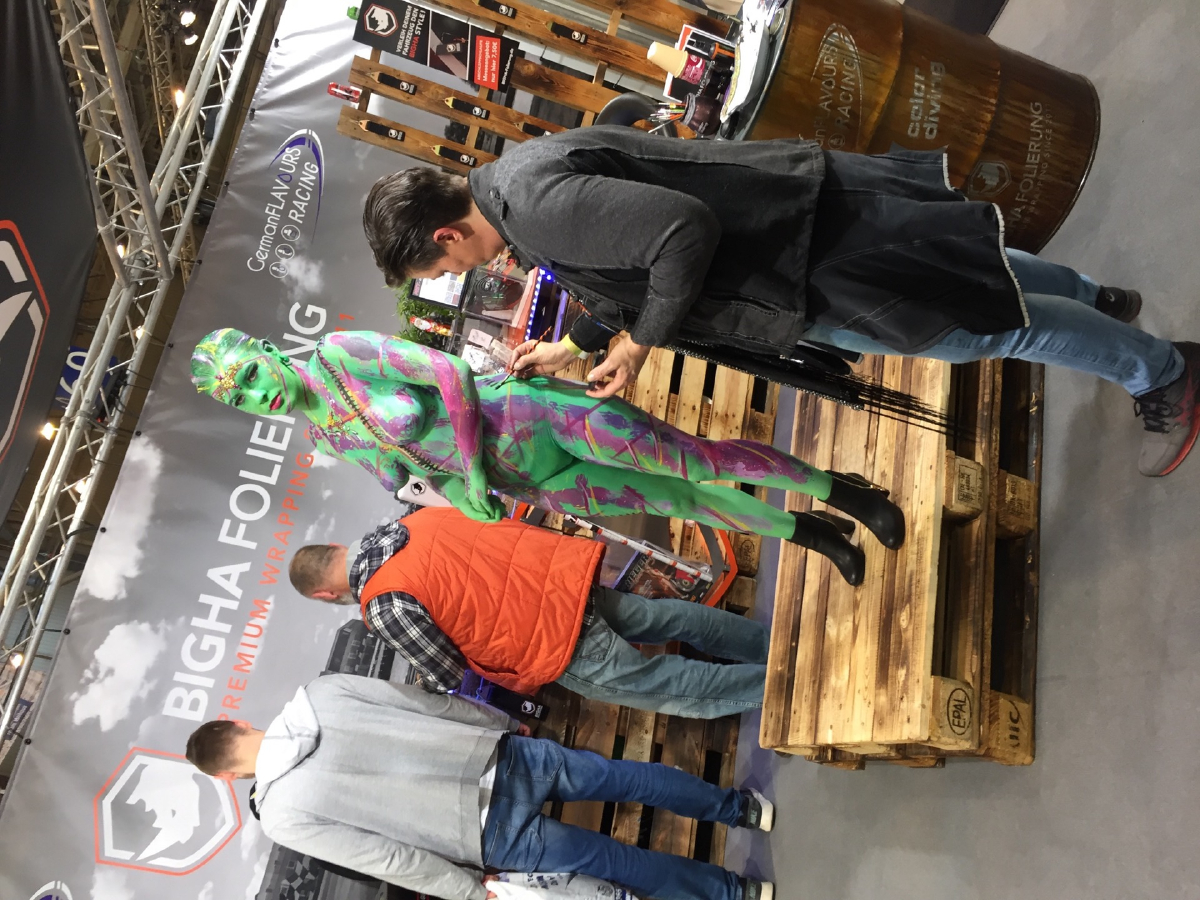 Diese Junge Dame wurde auf der Essen Motor Show einem BodyPainting unterzogen.